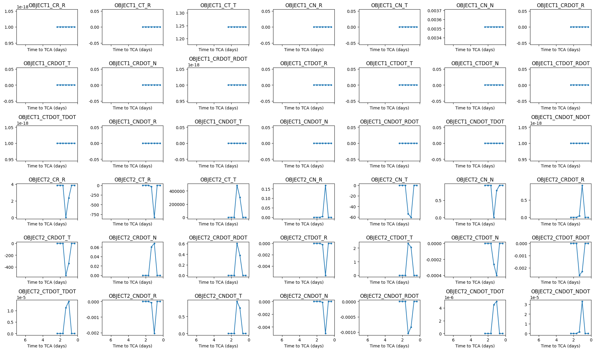 Furthermore, we can leverage a built-in function to plot the covariance matrix evolution of a specific event (all the covariance matrix elements will be plotted in multiple sub-figures):